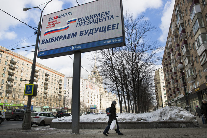Проучване от 9 март на държавния Общоруски център за изследване на общественото мнение (ВЦИОМ) дава на Путин подкрепа от 69 на сто. Най-сериозният му съперник е кандидатът на Комунистическата партия Павел Грудинин, но той има едва 7 процента.