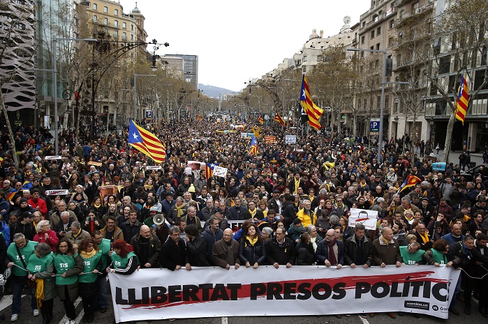 По призив на една радикална сепаратистка групировка - Комитети за защита на републиката, протестиращите се стекоха на Лас Рамблас, прочутия булевард в центъра на Барселона, скандирайки "Свобода за политическите затворници" и "Пучдемон е нашият президент". Те се насочват към сградата на делегацията на Европейската комисия в каталунската столица.