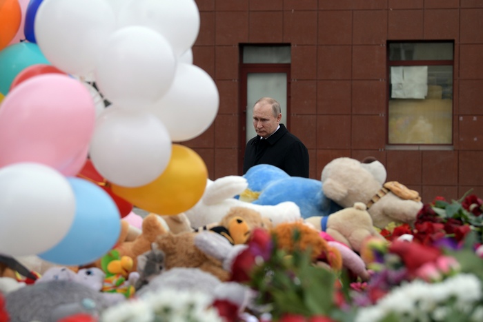Путин постави букет от рози на спонтанна могила, където хората носят цветя, играчки и снимки на загиналите. Президентът и спецпратеникът в Сибирския федерален окръг Сергей Менияло огледаха и обгорялата фасада на търговския център "Зимна вишна".