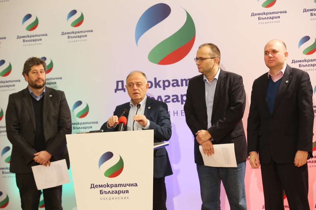 След неколкомесечно сътрудничество трите партии - "Да, България", "Демократи за силна България" и "Зелените", обявиха своя политически съюз. Те поканиха медиите в столичния хотел "Хилтън", за да представят "новото демократично политическо обединение на България". Името е известно от няколко дни - "Демократична България".