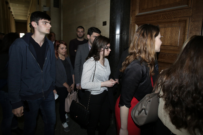 Днес студенти наблюдаваха в реално време в залата случащото се по казуса с Йоан Матев. Вляво на снимката е един от свидетелите по делото - Атанас Колев.