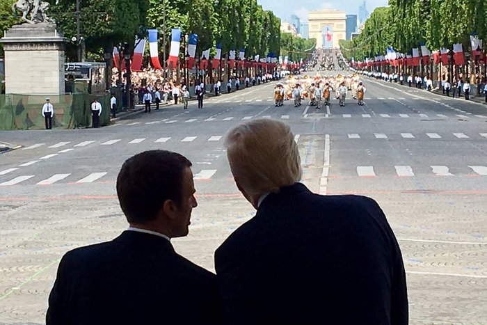 Двамата ръководители обаче имат диаметрално противоположни позиции по редица въпроси - от климата през свободната търговия до Иран. И макар да се въодушеви от парада за 14 юли на "Шан-з-Елизе" в Париж дотолкова, че да поиска да организира подобен във Вашингтон, досега Тръмп на практика не е отстъпил от нито едно от вижданията си.