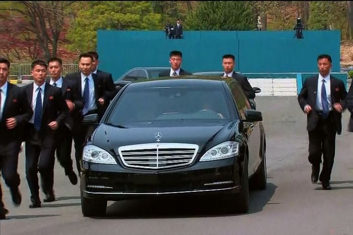 По-късно лидерите, съпровождани от почетен караул, влязоха в Дома на мира в демилитаризираната зона Панмиджон, където ще се проведе срещата между тях и делегациите на двете страни.