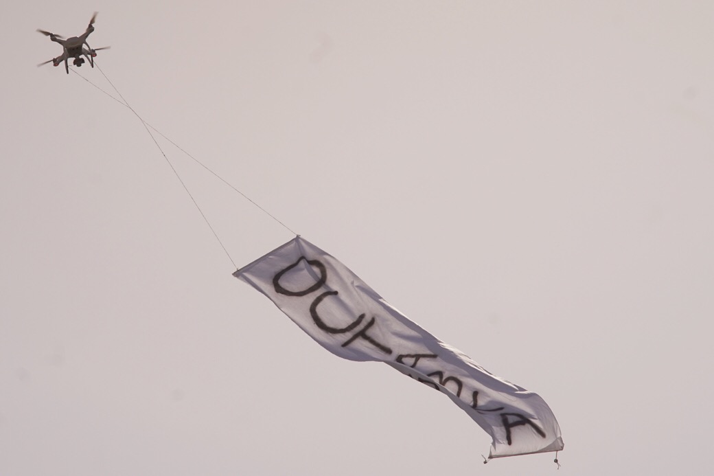 Канал 3 предава на живо, дрон носи напдис "Оставка", а лозунгите са всеобхатни дори до такива като "Не искам да съм телефонист" (?!, б.р.).