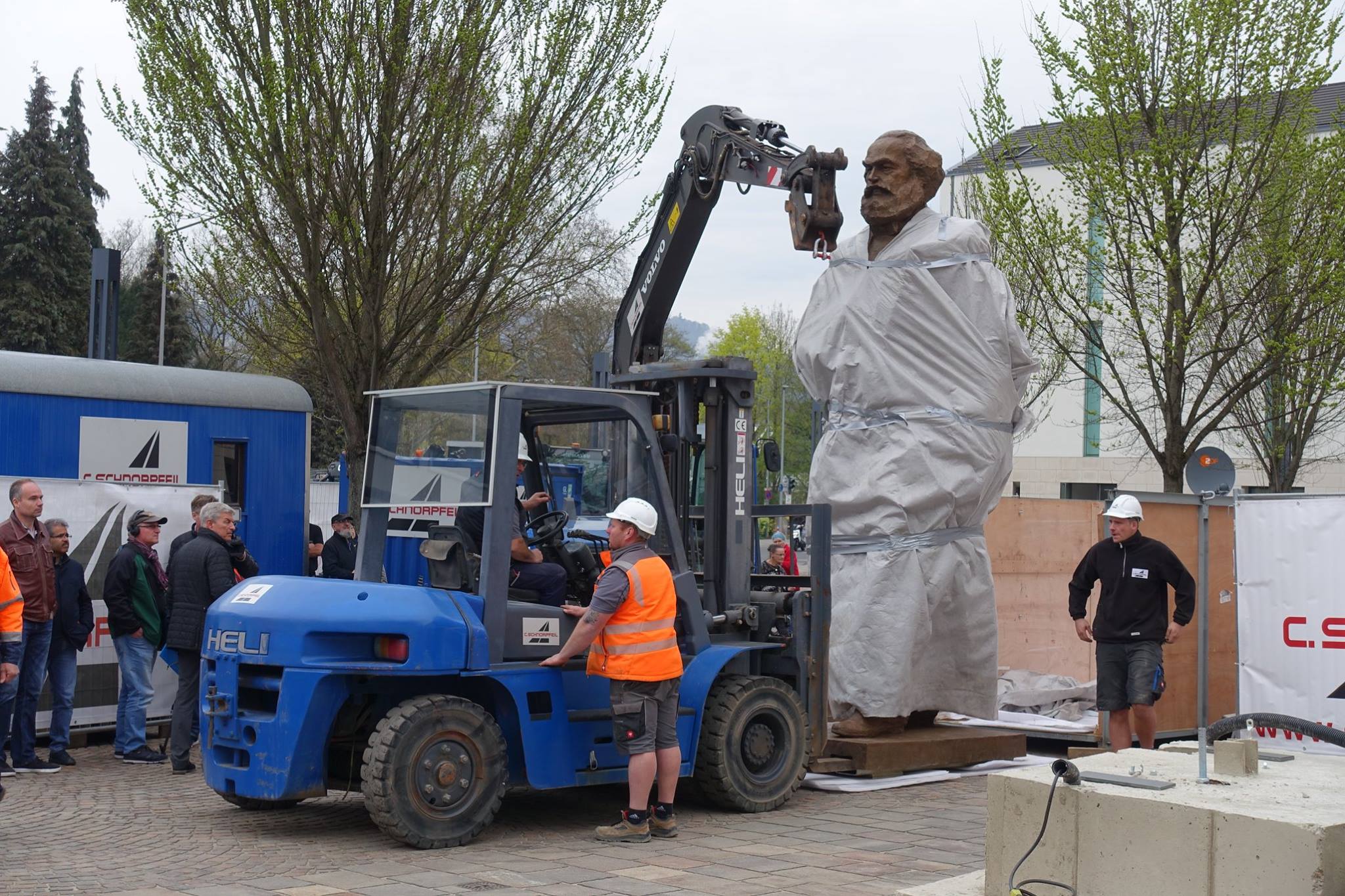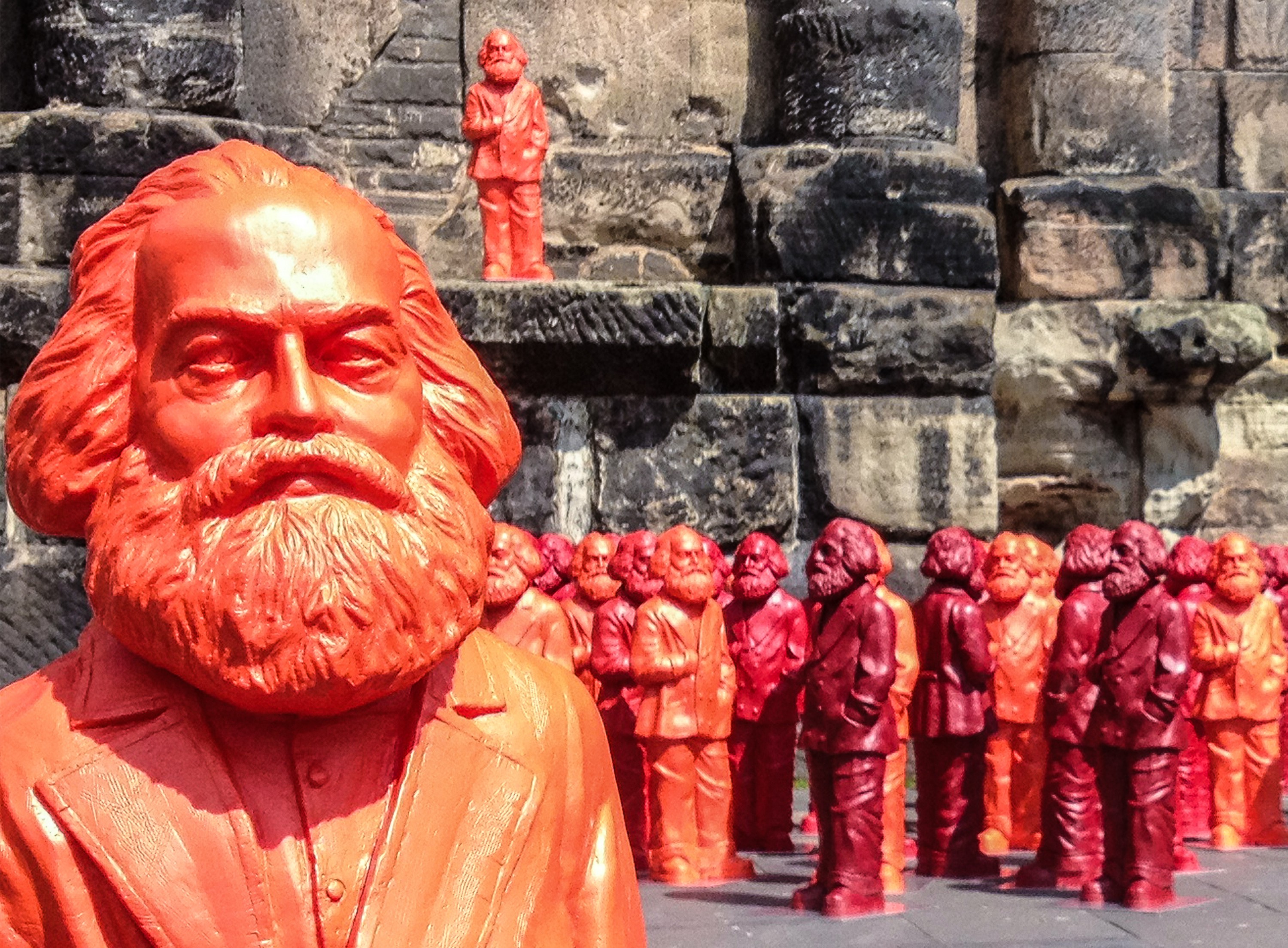 Събитието на годината е на 5 май – тогава предстои официалното откриване на монументалната бронзова статуя на Маркс, подарена от Китай по случай 200-годишнината на философа. Местните власти доста се колебаят, преди да приемат подаръка, но в крайна сметка дават съгласието си и тя вече е поставена недалеч от най-безспорния символ на града – черната порта от римско време Porta Nigra. Там е мястото и на творбата, изработена от китайския скулптор Ву Вейсан.