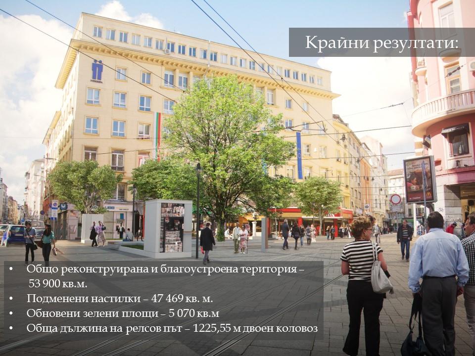 Срокът за приключване на този първи етап от реконструкцията на зоната около ул. „Граф Игнатиев“ е средата на октомври. Книжният пазар ще бъде върнат на пл. „Славейков“, а фонтанът ще бъде обновен.