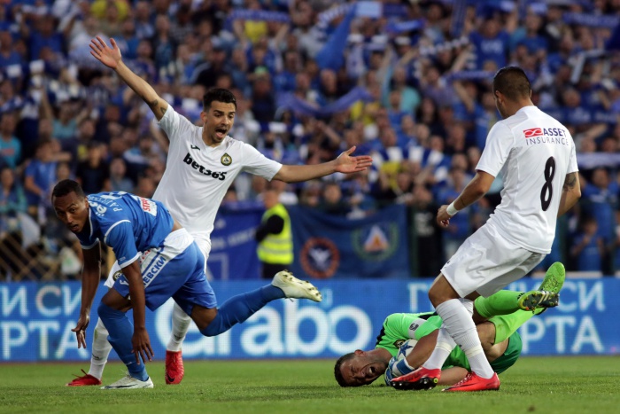 2:1 Роман Прохазка ("Левски") - пропуск, втора поредна спасена дузпа от Петков, който пак уцели ъгъла