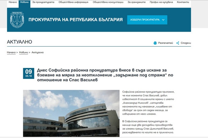 Софийската районна прокуратура вчера изпадна в интересен казус, като наложи 72 часа арест и доведе в съда - съвсем буквално, физически - осъдения за измама Спас Василев. Проблемът е, че той си е съвсем редовен затворник към датата, на която се случва всичко - 9 май.