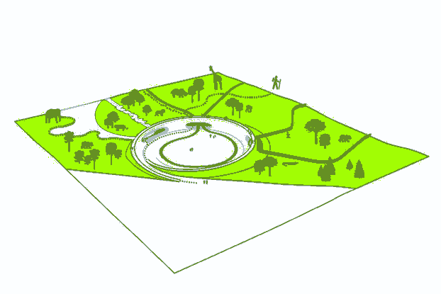 "Вместо да копираме архитектурата от различни континенти, вместо да се ползва местна архитектура, ние предлагаме да се интегрират и да се скрият сградите, доколкото е възможно, в пейзажа", казват Бярке. Желанието му е да се избегне обичайния "Дисни" подход, при който клетките на тигрите са като индийски храмове, а за да видиш пандите, влизаш в китайска пагода. "Затова просто махаме сградите изцяло."