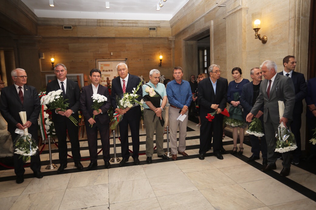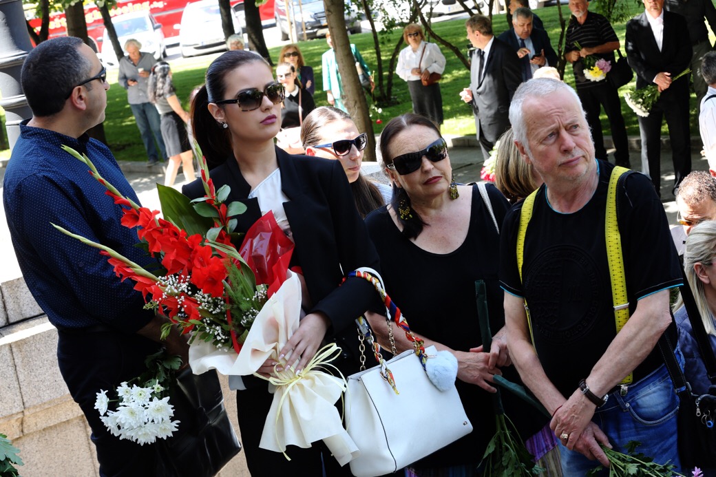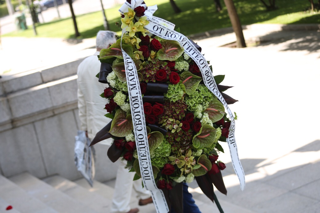 Всичко това бе отразено и в стотиците букети пред портрета му във фоайето, които периодично бяха премахвани, за да не го закриват и в десетките венци, подредени в другия край на залата – от Министерството на културата, от Националната галерия, от Софийска градска, от Нов български университет, от БНР, от БСП, от министър Лиляна Павлова, от омбудсмана Мая Манолова, от Фондация „Ванга“, от „колегите от Фондация „Тракия“… а най-големият бе от колекционера Васил Божков.
