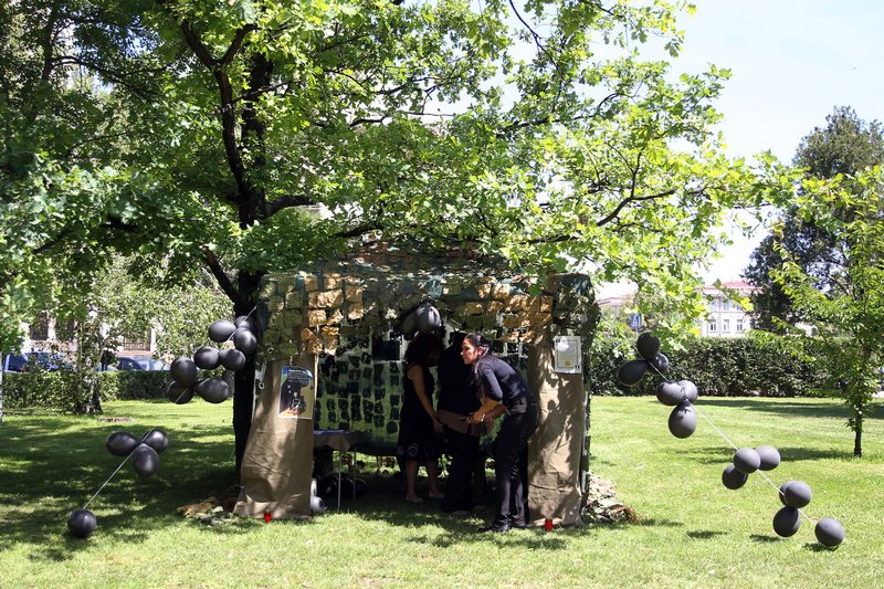 Присъстваше и "летящият холандец" - това е скелет, който е изпратен със самолет от Холандия, поставен в инвалидна количка. Той също беше в тениска "Системата ни убива".