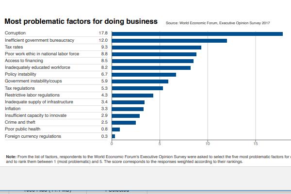 В инфографиката по-долу са показани най-проблематичните фактори за правене на бизнес у нас, като след корупцията се нарежда диктатът на "гишетата" - бюрокрацията и неефективната работа на държавната администрация.