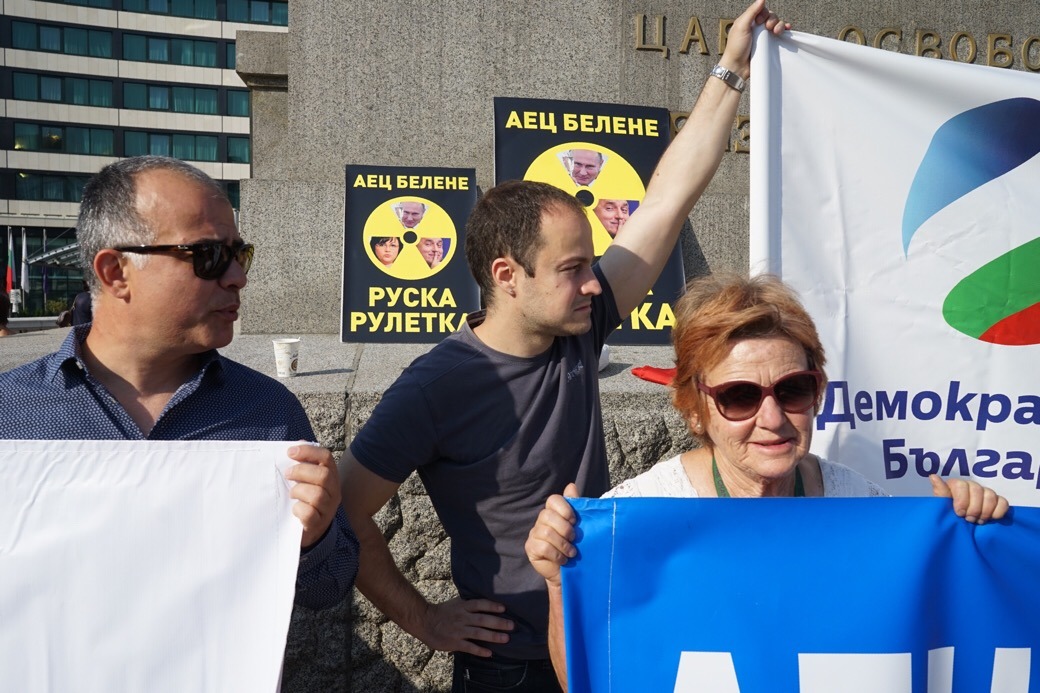 Протест, организиран от новата дясна формация "Демократична България", се състоя днес пред парламента заради планираното за тази седмица разглеждане на предложението за отмяна на мораториума за строежа на АЕЦ "Белене".