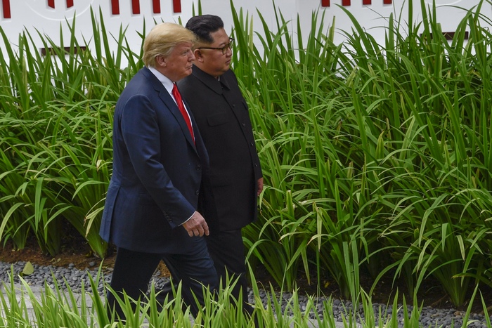 Президентът на САЩ Доналд Тръмп и председателят на Комисията по държавни дела на КНДР Ким Чен Ун проведоха първата си историческа среща в Сингапур на 12 юни 2018 г.