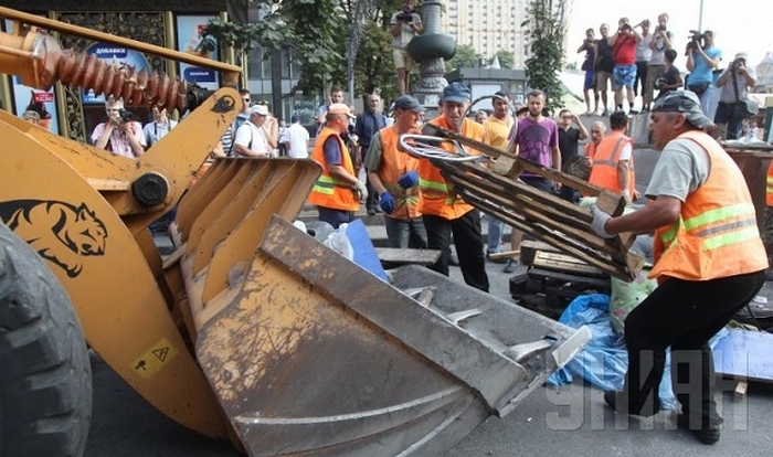 В събота властите в Киев подновиха опитите да премахнат барикадите и палатките от пътното платно на централната улица „Крещатик”. Няколкостотин доброволци и работници на комуналните услуги са на площад „Независимост”. Те са предвождани от кмета на столицата Виталий Кличко. Той преговаря с активистите от Евромайдана, за да могат да бъдат освободени пространствата и площадът отново да стане място за разходки и срещи на киевчани. По неговите думи 82 на сто от столичаните са отговорили с "да" на въпрос дали искат да бъдат махнати загражденията в центъра на града. Допитването е било направено в първите дни на август.