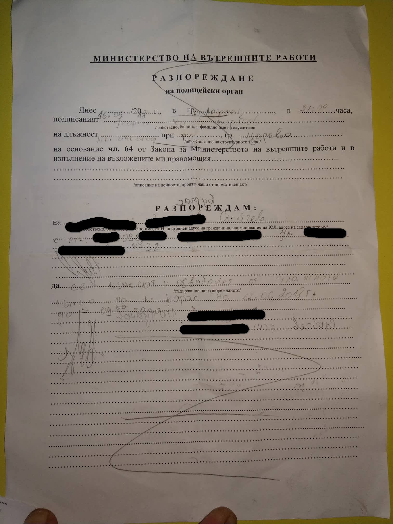 Като основание е посочен чл. 64 от Закона за МВР, който гласи: