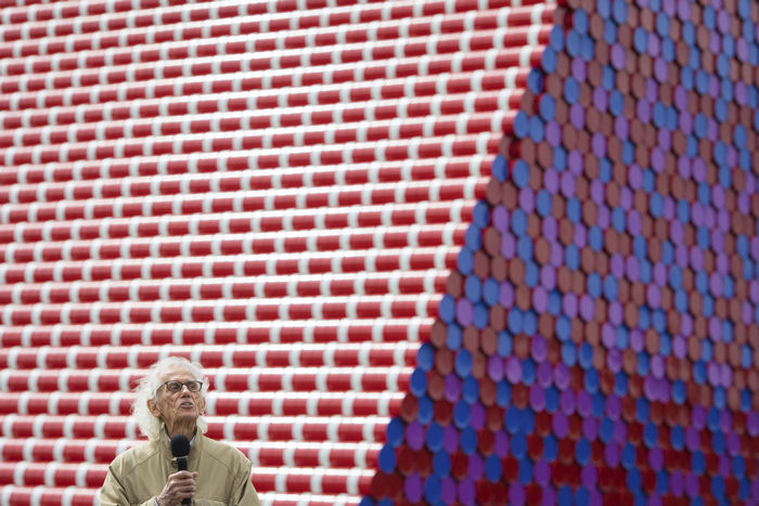 Блумбърг пристигна в Лондон специално, за да води пресконференцията за откриването на „Мастабата“. Събитието започна със закуска в галерия „Серпентайн“, разположена в непосредствена близост до езерото. В нея е подредена изложба на Кристо и Жан-Клод, която показва всичките им произведения и проекти с варели от 1958 г. до днес.