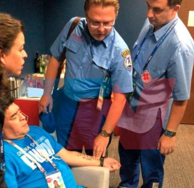 Телевизионните камери показаха, че Марадона не изглежда добре в ложата си на арената. Според "Ла Насион" на величието е оказана помощ на място. Фамозният № 10 е изведен от мястото си на трибуната. Той е легнал във ВИП бокса си, а скоро след това отново е бил на крака.