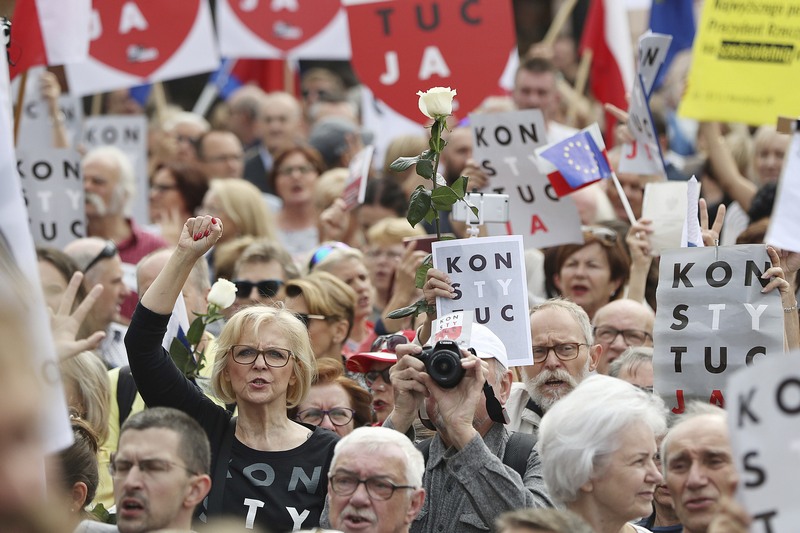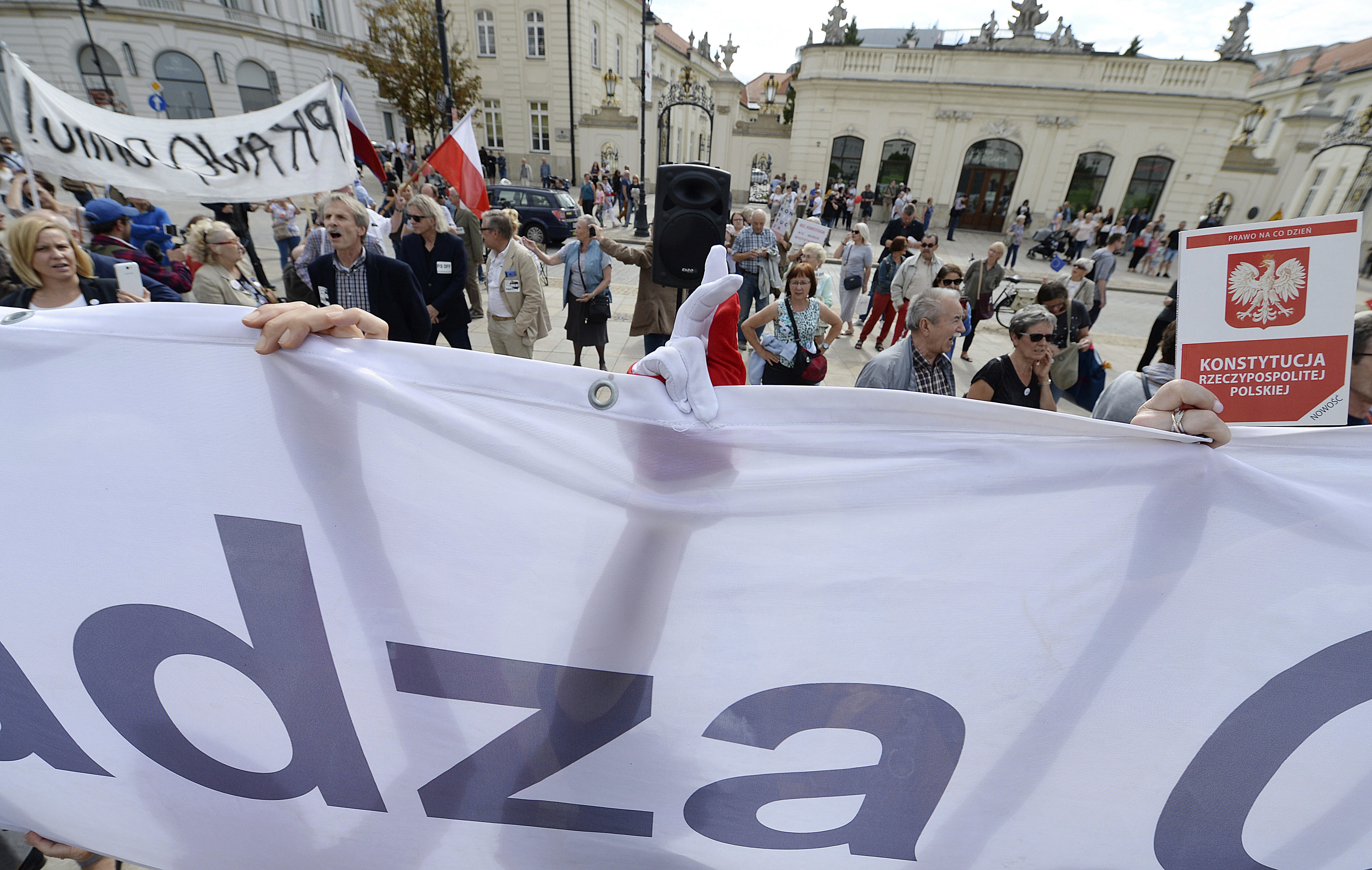 Председателката на Върховния съд Малгожата Герсдорф дойде да благодари на демонстрантите във Варшава и бе аплодирана, когато отново заяви, че ще остане на тази длъжност до 2020 г.