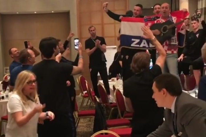 Големият футболен купон снощи беше в Хърватия. Както и в хотела на "ватрените" в Москва. Тимът на треньора Златко Далич победи Англия с 2:1 след продължения във втория полуфинал на Мондиала, класира се на финал срещу Франция и след като бурно ликуваше на терена с феновете си, се отдаде на заслужено празненство в ресторанта.