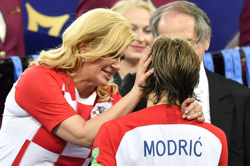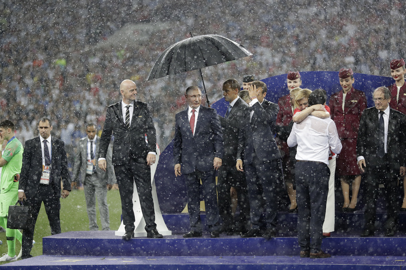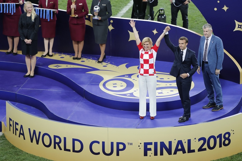 Държавните глави на Франция - Еманюел Макрон и на Хърватия - Колинда Грабар-Китарович, гледаха двубоя заедно и слязоха на терена хванати за ръце.