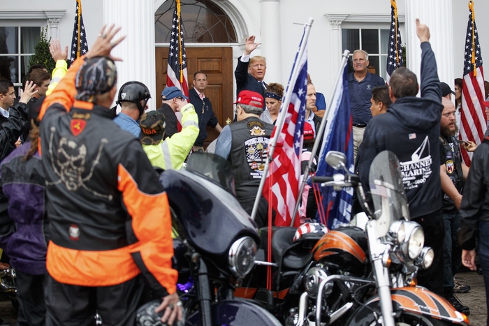 В събота президентът прие в своя клуб в Бедминстер, Ню Джърси, мотористи от групата "Рокери за Тръмп" и ги окуражи да не купуват "Харли Дейвидсън", ако собствениците решат да изнесат производството на моторите.