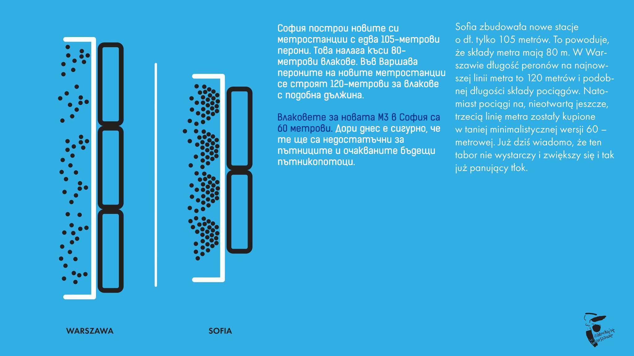 Сред критиките на зам.-кмета на Варшава към метросистемата на София се открояват две – близо три пъти по-големите интервали на движение на софийското метро в определени часове от деня, както и по-късите станции и влакове. Проблеми, за които ние говорим от години, предупреждавайки, че така построена, системата няма как адекватно да обслужва пътникопотоците в София. Пророчески звучат и изводите:
