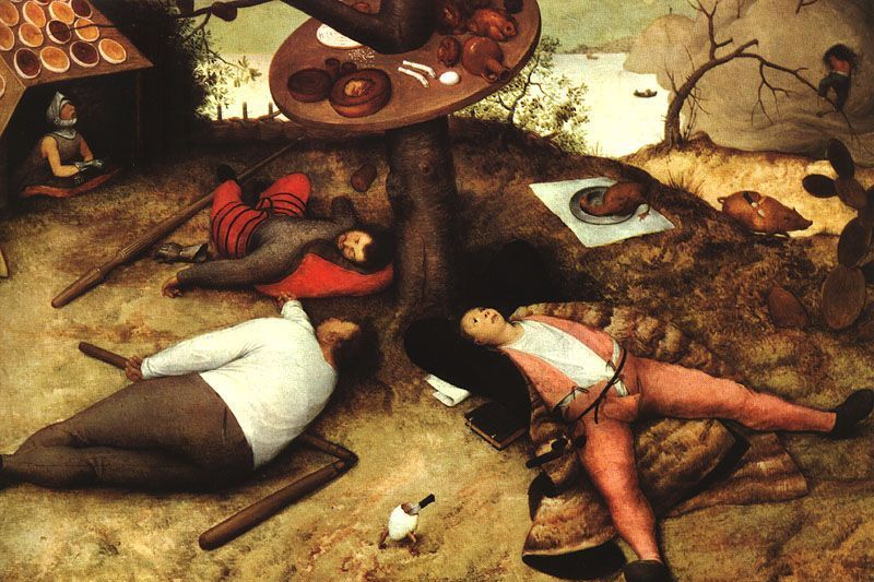 Това е страната, известна не само с безбройните деликатеси, които щедро предлага, но и като страна, в която трудът и прилежанието са греховни занимания – най-голямата добродетел е наслажданието от живота, не изискващо полагането на никакви усилия. Старостта пък не е нито порок, нито проблем – на разположение е подмладяващ фонтан, от който всички излизат на 18.