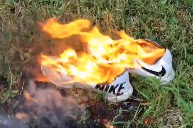 За часове социалните мрежи бяха заляти от снимки и видеа, на които се вижда как стотици американци изгарят или унищожават по друг начин маратонки и екипи на фирмата. Те пишат, че са бесни заради решението на Nike да включи Каперник, който "погазва" националния химн и американските ценности. Нищо не може да извини това да не стоиш прав, когато зазвучи "Знаме, обсипано със звезди", и т.н., и т.н.