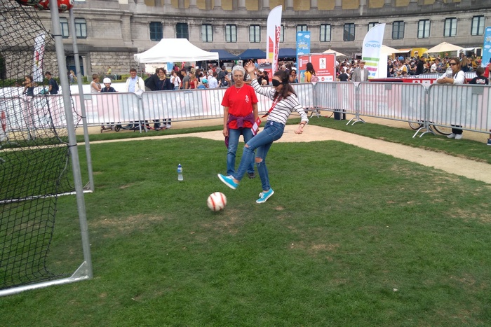 Така например в парка "Сенкантенер" вървеше акция в подкрепа на белгийския параолимпийски отбор. Здрави деца имаха възможност да бият дузпи с тъмни очила, които не им позволяват да виждат нищо.
