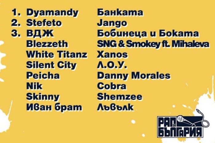 Конкурсът бе организиран и финансиран от Джамбазки, а председател на журито е рапърът ALEX P. Точно 20 са авторските песни и изпълнители, а авторът на класираното на първо място парче ще получи професионален запис и 1500 лв. Според правилата парична награда има и за второ и трето място - 1000 и 750 лв.
