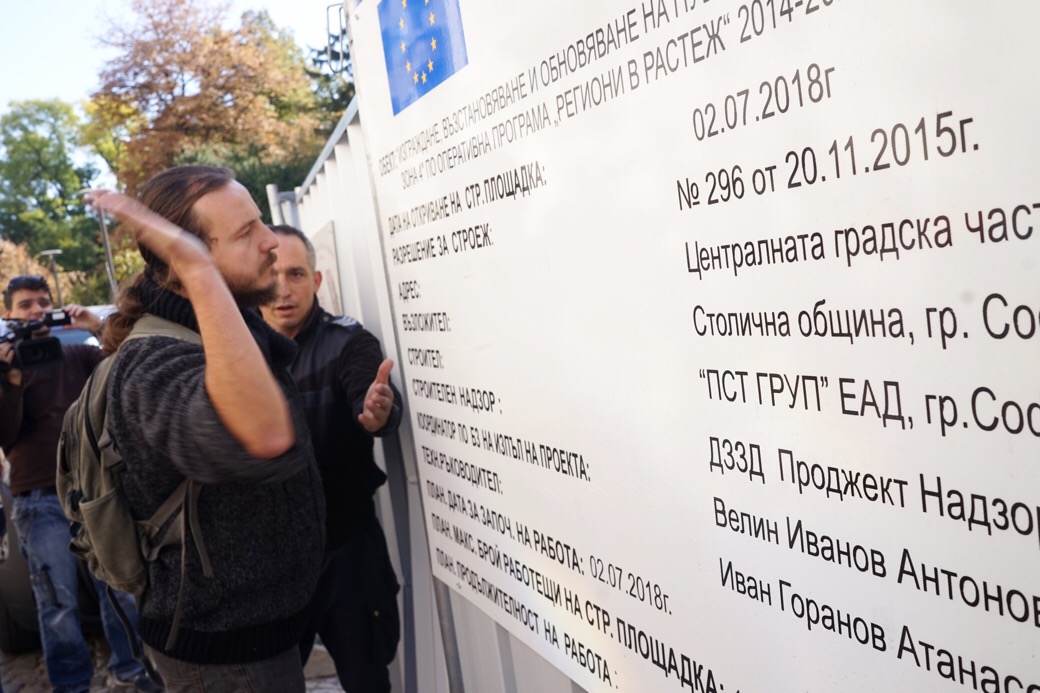 Активистът Манол Глишев пък нахлу зад загражденията при църквата "Св. София" и изгони работниците.