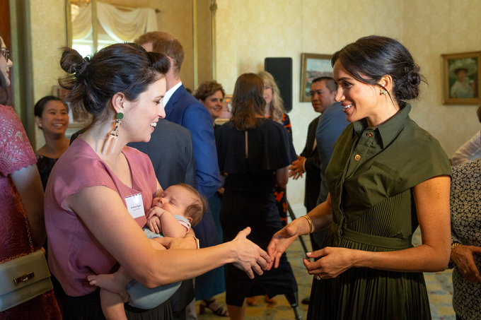 Принц Хари и съпругата му бяха в отлично настроение и се усмихваха през цялото време, като херцогиня Меган вече не правеше опити да прикрие своята бременност. Тя носеше прилепнала рокля без ръкави, подчертаваща коремчето й, и обувки на високи токчета, като държеше за ръка съпруга си. От време на време оправяше дългата си тъмна коса, подложена на лекия бриз в Сидни, отбелязват местни медии.