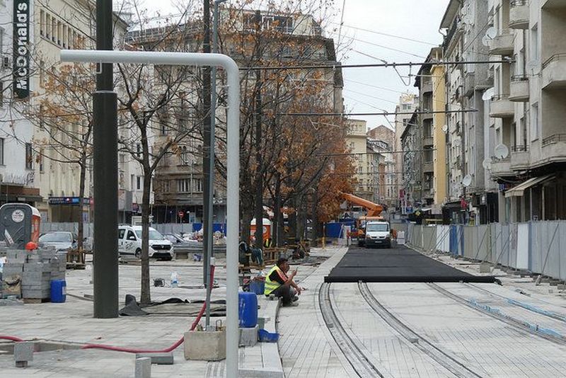 Според работници на обекта, трамваят по "Графа" трябва да тръгне до 20 ноември, а работата по тротоарите ще продължи и след това.