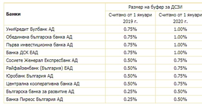 Българската народна банка определи десет банки за системно значими (ДСЗИ - системно значима институция, бел. ред.), което означава, че ще трябва да заделят повече от останалите капитал, който да покрива трупащия се в системата риск. Средства за т.нар. антицикличен буфер, който до края на септември беше 0%, ще се трупат от началото на 2019 г.
