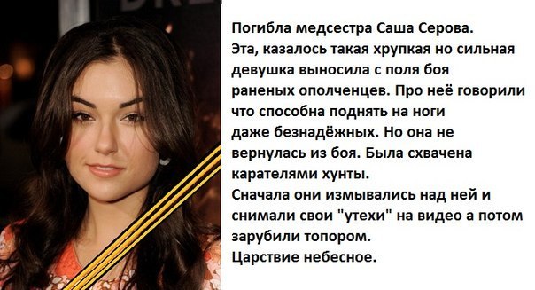 "Загина медицинската сестра Саша Серова. Тази крехка, но силна девойка, изнасяше от бойното поле ранени опълченци. За нея казваха, че е способна да изправи на крака дори безнадеждните случаи. Но тя не се върна от боя", гласеше съответната фалшива новина, която Грей трябваше лично да опровергае.