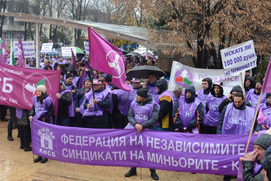 Миньори и енергетици протестират в Раднево заради неясното бъдеще на енергийния комплекс "Марица-изток", в който са включени четири централи, три от които частни, и 3 рудника. Енергетиците искат държавата да намери компенсаторен механизъм за загубите от въглеродни емисии за държавната "ТЕЦ Марица-изток 2".