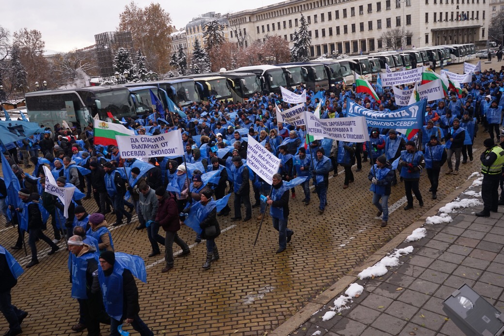 В София протестиращите миньори и енергетици, пристигнали с автобуси в столицата, се отправиха с възгласи "Победа" към Представителството на Европейската комисия на ул. "Г.С. Раковски".