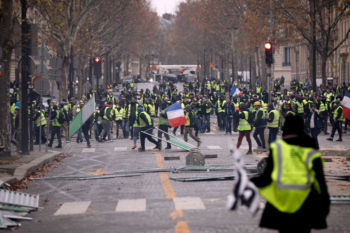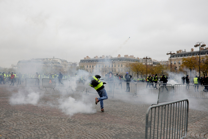 Преди седмица демонстрантите, които нямат лидер и до голяма степен се самоорганизират в интернет, за първи път се събраха в Париж, превръщайки Шан-з-елизе във военна зона.