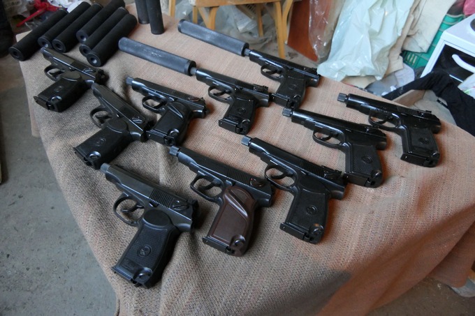 Задържани са куп оръжия - общо автомати Калашников - 65, 37 бр. "Скорпион", 43 пистолета различни марки, 8 кг черен барут, 2 сандъка със запалки за гранати, 487 цеви за различни оръжия, 2 пушки помпи, 14 дръжки със спусък за РПГ. Патроните тепърва ще се броят - "около 50 000 патрона, възможно е да излязат 100 000, говорим в някакъв диапазон в момента", изброи шефът на ГДБОП Ивайло Спиридонов.