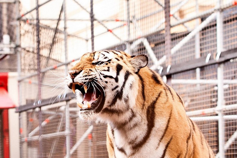 Друга от акциите им минава под заглавието „Изяжте бежанците” и представлява инсталирана през 2016-та насред Берлин арена, наподобяваща гладиаторските, на която четири либийски тигъра са уж в очакване да разкъсат 100 сирийски бежанци. Вместо „Хляб и зрелища” – „Бедствия и игрички” кръщават проявата си „центристите” и за пореден път успяват да се прочуят из цяла Германия. „Центърът за политическа красота е нов вид медиа: те сами произвеждат новините, които биха искали да видят”, пише за групата списание „Шпигел”.