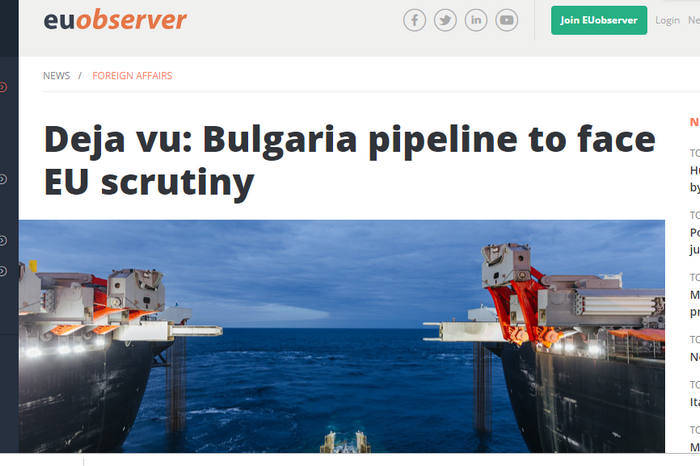 България е изправена пред възможността за нова проверка от страна на ЕС заради „Турски поток“, съобщи „ИЮ обзървър“ (EUobserver).