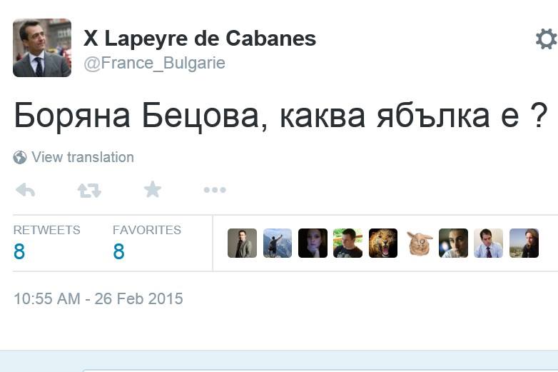 Делото бе от "портфолиото" на прокурор Боряна Бецова. През февруари 2015 г. френският посланик Ксавие Лапер дьо Кабан написва онова: "Боряна Бецова каква ябълка е?"