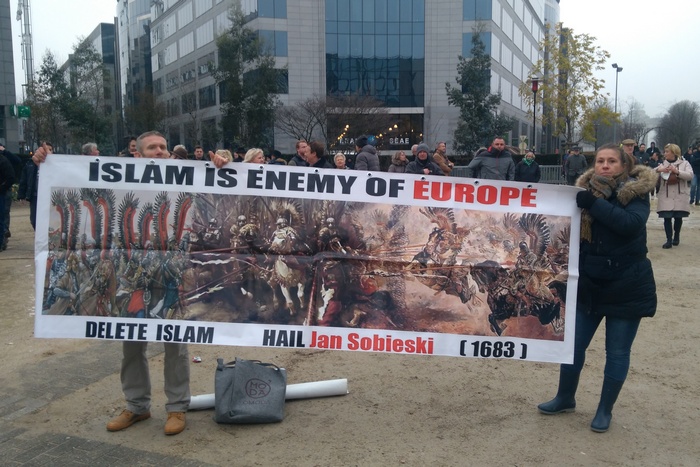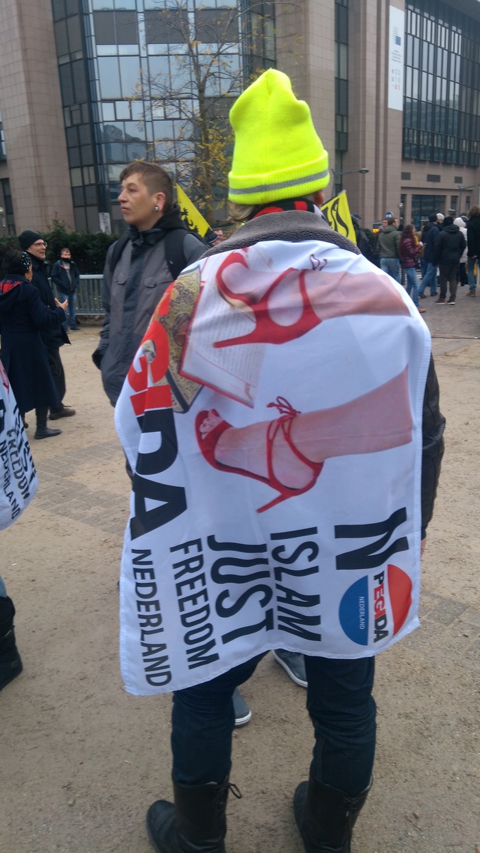 В Брюксел бяха пристигнали и активисти на германската крайнодясна партия ПЕГИДА, чието название е съкращение от Патриотични европейци против ислямизирането на Запада. Редом с германците бяха и хора от холандския клон на партията.