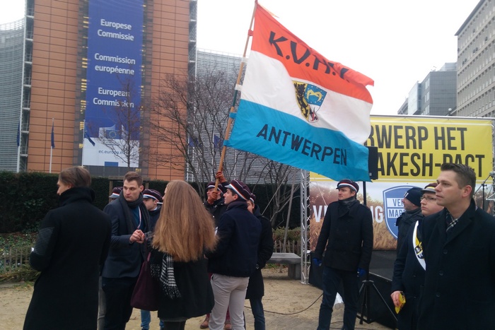 Сред протестиращите имаше много членове на младежката организация на крайно дясната партия "Фламандски интерес“ („Влаамс беланг“.