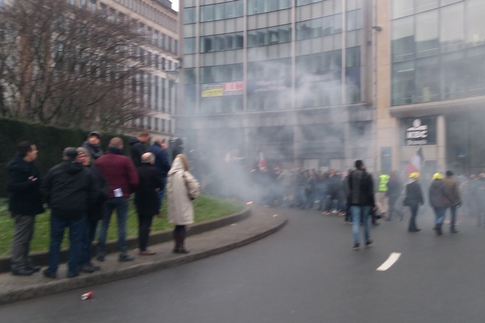 Участниците в днешния протест бях доста повече от „жълтите жилетки“, които демонстрираха в Брюксел преди седмица. Полицията обаче бе предварително блокирала района и те нямаха възможности да отидат надалече. До ранния следобед не се бе стигнало до сблъсъци.