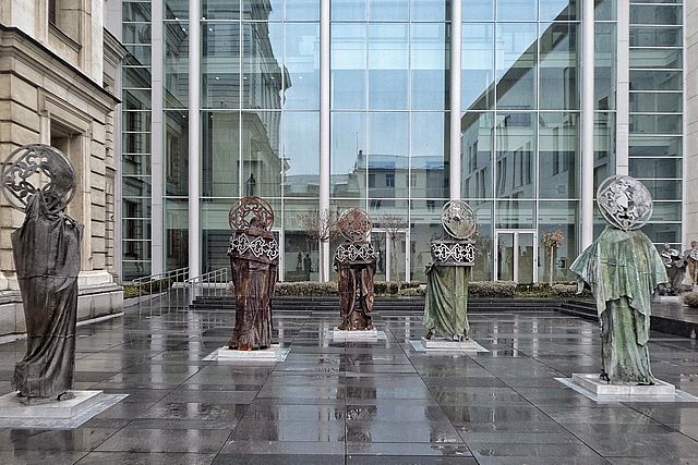 В дъното на атриума, до недовършената четвърта стена на Квадрат 500 (която би трябвало поне да бъде прикрита по-добре), е подредена композицията „Матей 24-27“. 27-ият стих от 24-ата глава на Евангелието на Матей в Библията гласи: