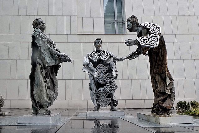 Централната част на двора в Квадрата е заета от монументалните, достолепни, алегорични фигури на „Седемте Седмочисленици“ - Кирил и Методий и техните ученици сякаш са се запътили към музея (може би за да го подредят по-добре),въоръжени с книги, ръкописи и други атрибути на духовността.