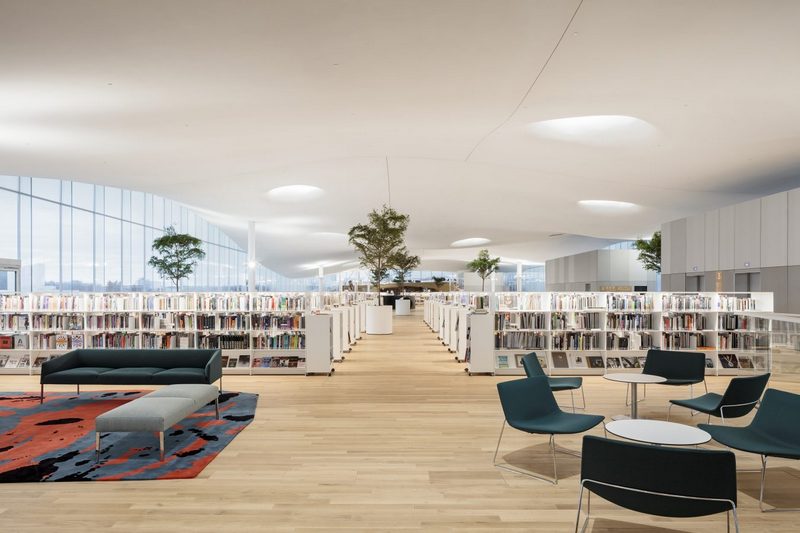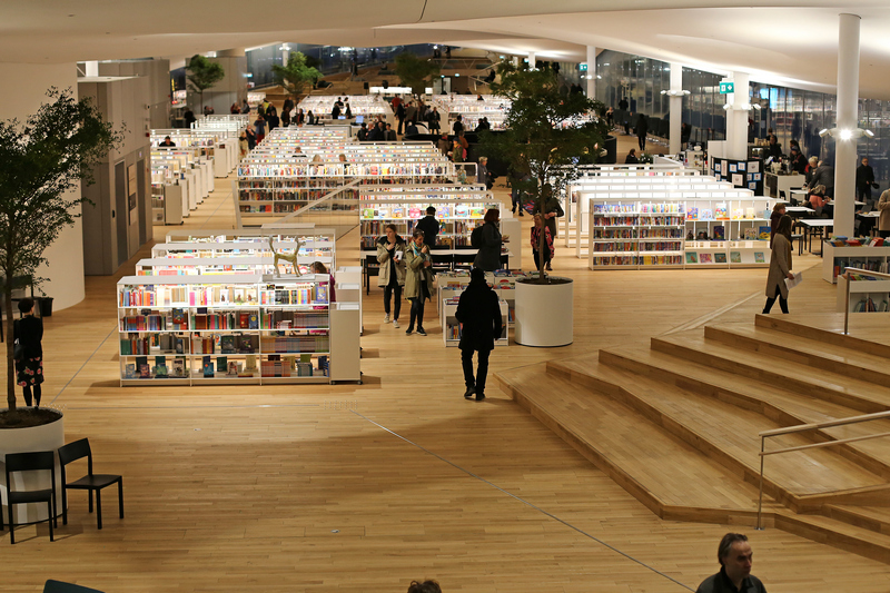 Разположена срещу сградата на парламента, новата библиотека е на три етажа, всеки от които се различава от останалите по дух и предназначение. Първият етаж разполага с места за срещи и забавления като кафене, ресторант, кино, многофункционална зала и пространство за ранно детско обучение. Вторият етаж е перфектното място за всички малки и големи с творчески заложби, тъй като включва зала с умни стъклени стени, студия, кабинет за свирене на музикални инструменти, кабинет с медийна техника, зали за учене и групова работа, 3D скенери, шевни машини и т.н. На третия етаж, който се доближава най-много до традиционните библиотеки, ще намерите 7 зали за четене, наречени (съвсем уместно) „оазиси“, и около 100 000 книги, вестници и списания.