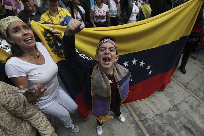 Множеството изпя националния химн и избухна в овации, предаде ДПА. В протестните демонстрации участваха стотици хиляди венецуелци, които призоваваха президента Николас Мадуро да подаде оставка.